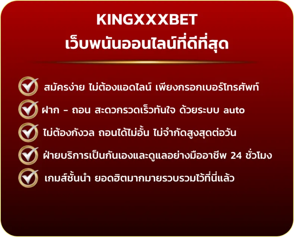 Kingxxxbet ยินดีให้บริการด้วยมาตรฐานระดับสากล พร้อมเป็นเพื่อนคู่ความบันเทิงของคุณตลอด 24 ชั่วโมง